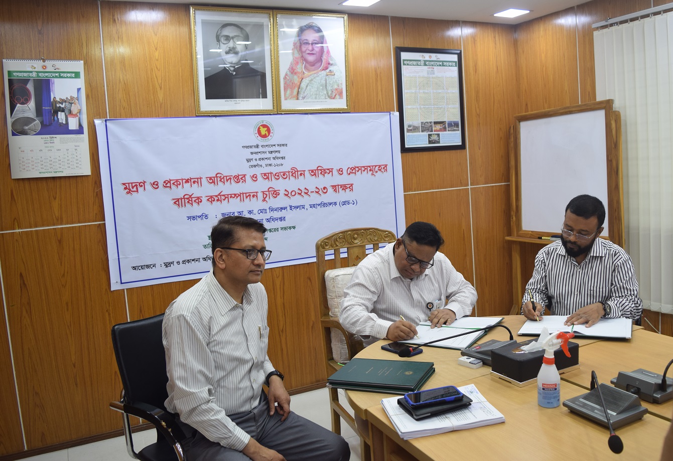 মুদ্রণ ও প্রকাশনা অধিদপ্তর ও আওতাধীন অফিস ও প্রেসসমূহের বার্ষিক কর্মসম্পাদন চুক্তি ২০২২-২৩ স্বাক্ষর_23.06.2022